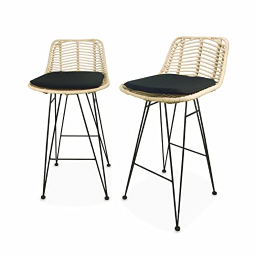 Alice Home Rotin & Métal - Deux Tabourets Bar Coussins Noir