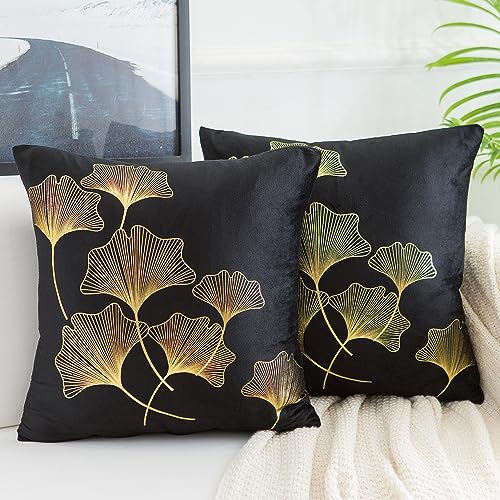 Housse Coussin Carrée 45x45 cm Velours Noir Doux Imprimé Gin...