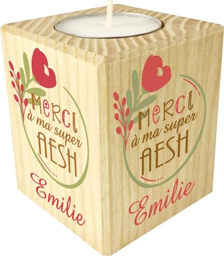 Bougie personnalisée AESH - Porte bougie bois personnalisé p...