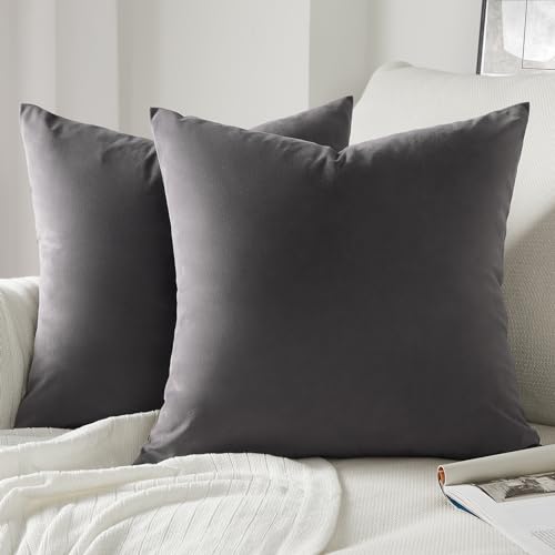 Topfinel Housse de Coussin 40x40 Gris Foncé en Velours Côtel...