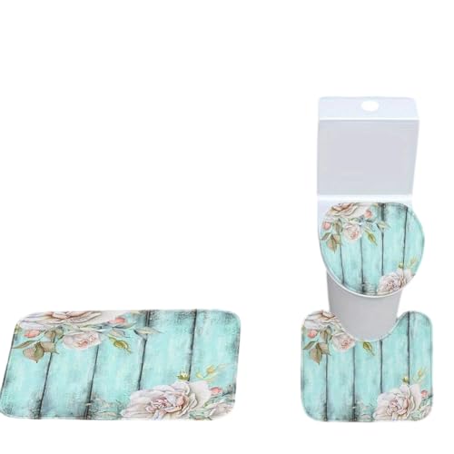 Ensemble de rideaux de douche vintage bois turquoise, tapis...