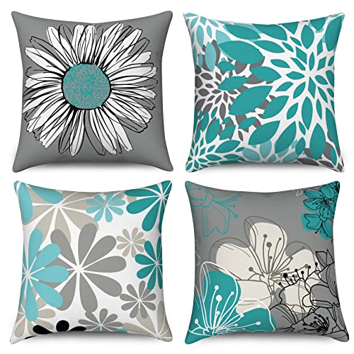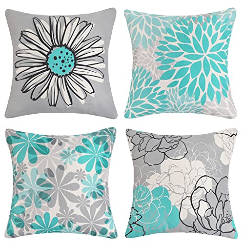 Hnmdmyi Housse de Coussin Turquoise 40x40 Set de 4, Turquois...