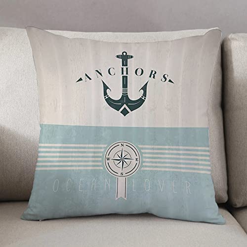 Housse Coussin 50x50cm-Fermeture Zip Cachée,Mer, ancre nauti...