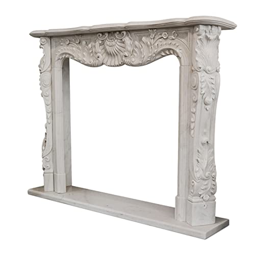 Cadre pour cheminée en marbre de Carrare avec décor Louis XV...