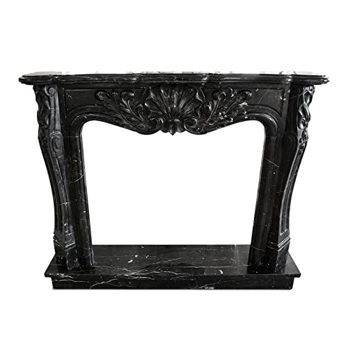 Cadre pour cheminée en marbre noir Marquinia avec décor clas...