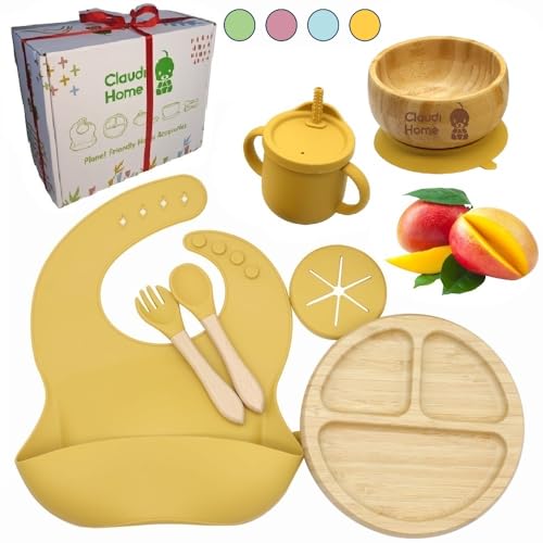 ? Kit repas bébé comprend un assiette en bambou avec ventous...