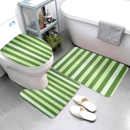 Dre Bain Lot 3 Tapis Rayures Verts Antidérapants U Couvercle
