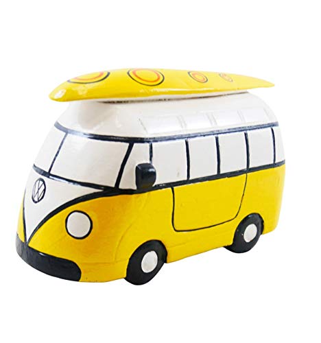 Tirelire Combi Van Vintage en Bois Jaune - Fabrication Artis...