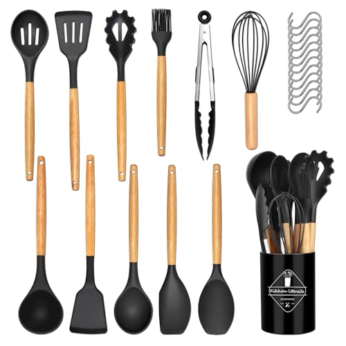 Kit de Cuisine Pièces 24, Couverts Antiadhésifs, Poignée Boi...