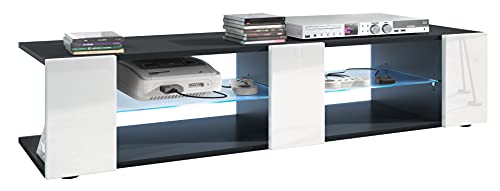 Vladon TV Buffet Bas Noir Mat Blanc, 6 Compartiments Ouverts