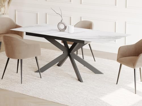 Table Manger Extensible ALBINA - 6-8 Couverts Céramique Verr...
