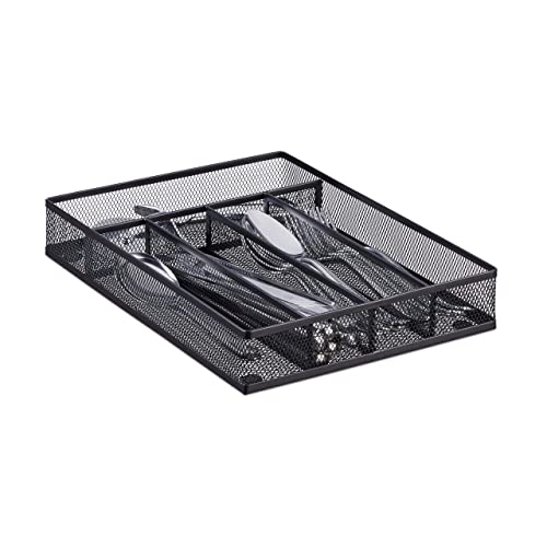 Bac à couverts treillis métallique noir: 5 compartiments pou...