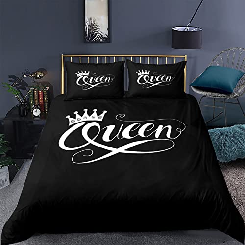 Housse de Couette 200x200 cm 3D Lettres Reine Roi Minimalist...