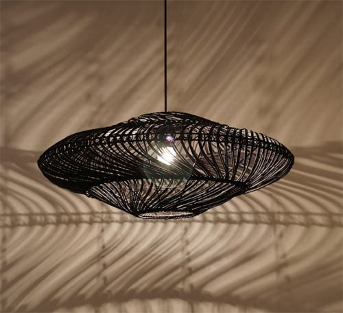 Luminaire asiatique en rotin et osier LED noir, suspension m...