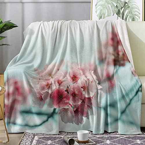 Plaid Fleurs de Cerisier Couverture Polaire 130x150 Blanc -...