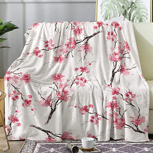 Plaid Fleurs de Cerisier Couverture Polaire 150 x 200 Blanc...