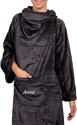 Hugz plaid avec manches personnalisé (gris foncé) | Avec bro...