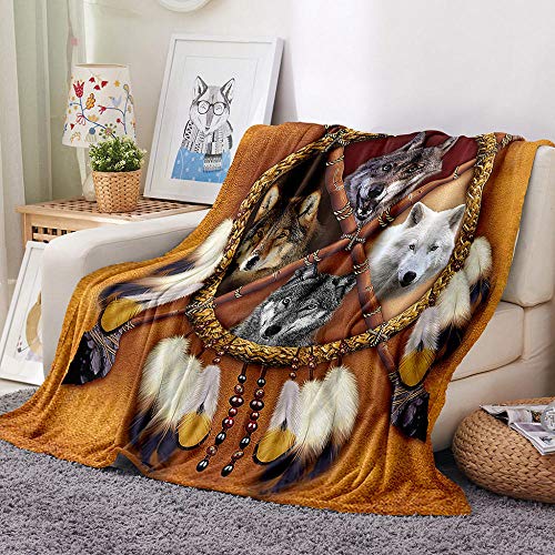 GHFFBUX Plaid 3D Attrape-rêves Loup Animal Couverture Polair...