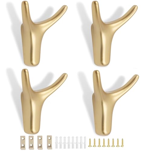 4 Pièces Crochets Porte Manteaux Dorés Double Crochet Mural...