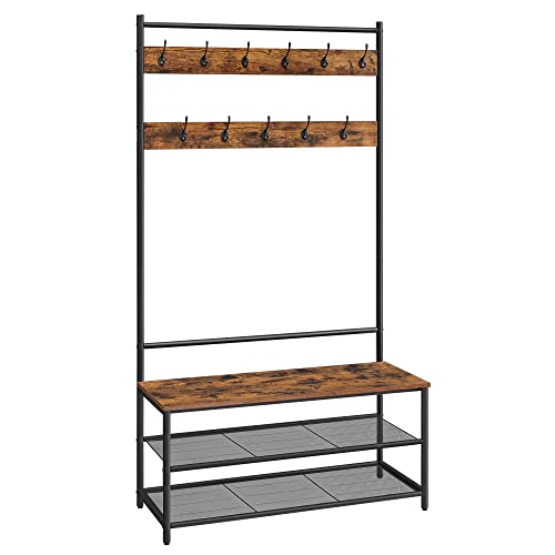 Vasagle Meuble Entrée, Crochets Réglables, Marron Rustique e...