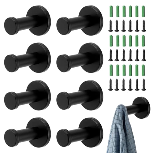 8 Pièces Patère Noire Crochet Mural Multi-Usages Porte Mante...