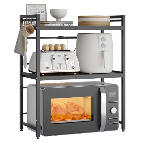 Étagère extensible micro-ondes 3 niveaux crochets noir