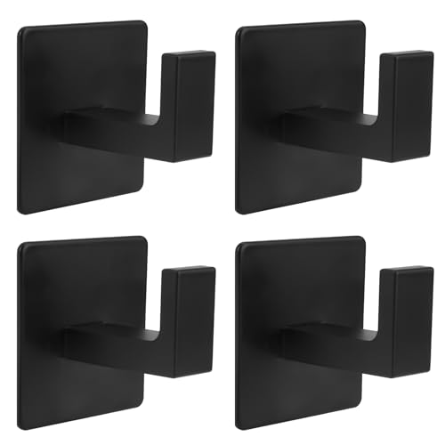 Patere crochets adhésifs muraux noir lot 4 crochets mural ca...