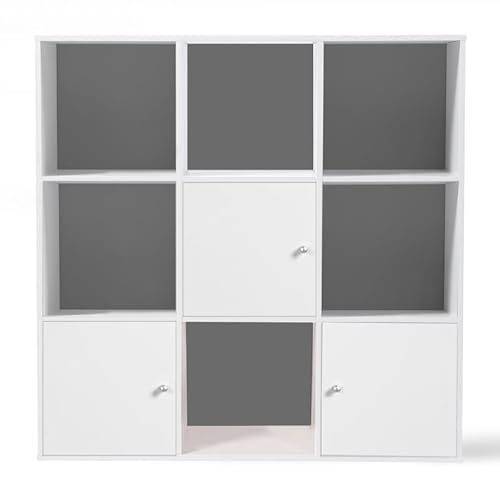 Cette bibliothèque cube 9 cases aux lignes contemporaines se...