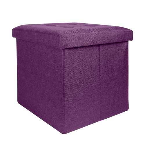 Tabouret de Rangement Cube Capitonné Lin