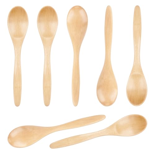 7pcs Petites Cuillères en Bois, 14,5cm Lisses Cuillères en B...