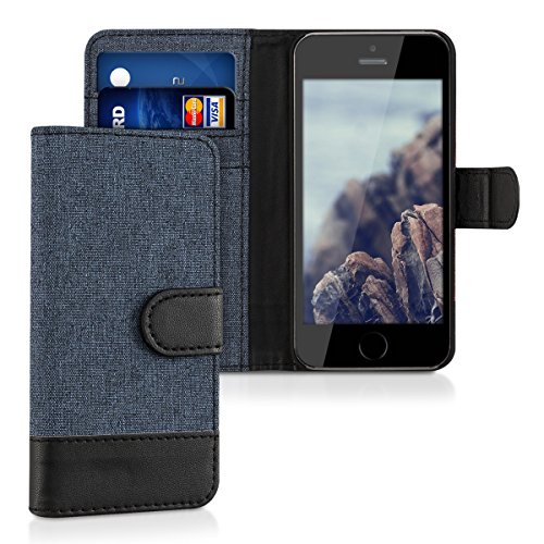Kwmobile Apple iPhone SE Étui Rabat Simili Cuir Bleu foncé