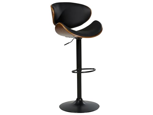 Chaise de Bar Métal Contreplaqué Noir PU Noir Assise Cuir Ro...