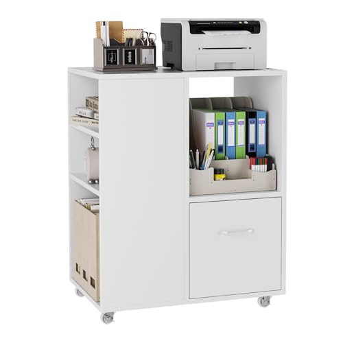 Caisson Bureau 3Tiroirs Support Imprimante Mobile Blanc A4