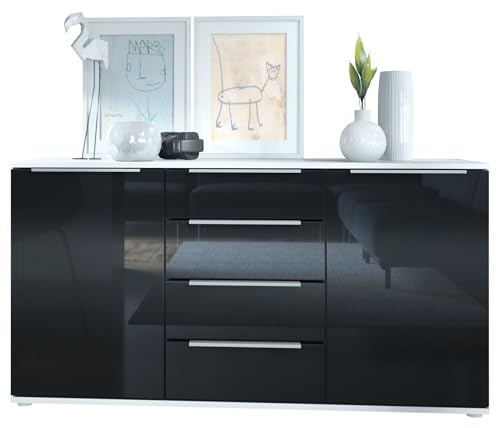 Vladon Linio V1 139x72.5x35 cm Buffet Caisson Blanc Mat