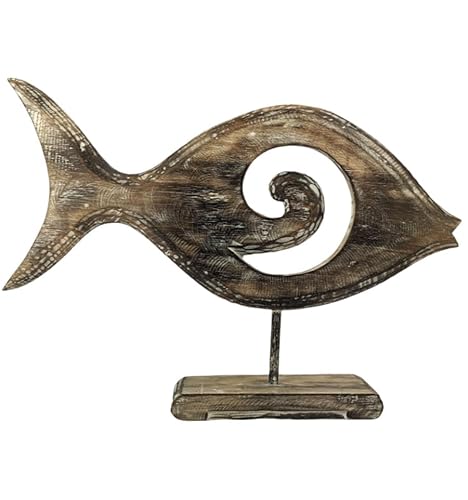 Papaya Grande Statue Poisson Patinée Bois 40x50cm Spirale
