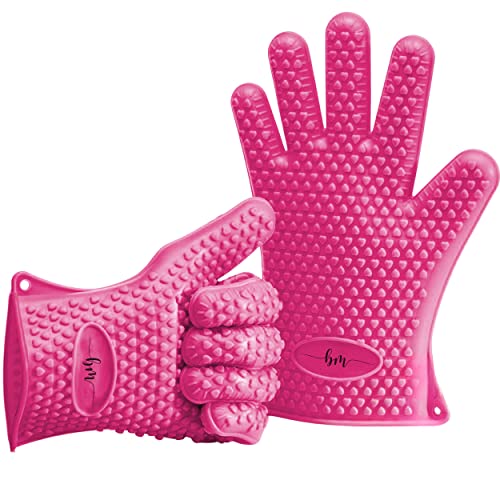 Gants de Cuisson Silicone Belmalia 2 Paire, Maniques Rose Vi...