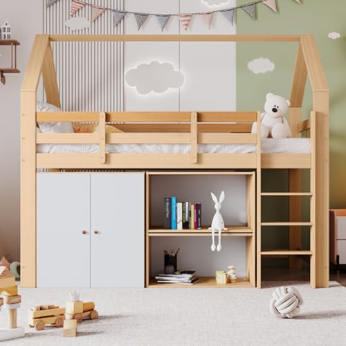 Tcewhhy Lit Mezzanine avec 2 Étagères Et Placard Rangement L...