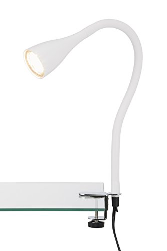 Cette lampe pince moderne, coloris blanc, possède une ampoul...