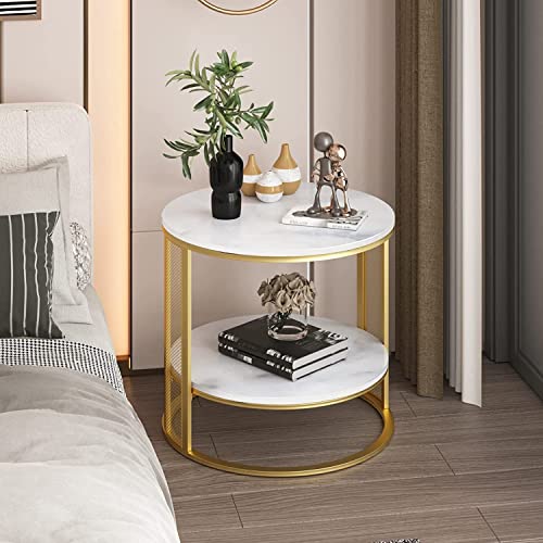 FATIVO Table Basse Marbre Rond: Table d’Appoint Design Blanc...