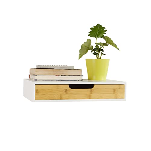 Étagère murale bois-bambou avec tiroir, armoire à clés, port...
