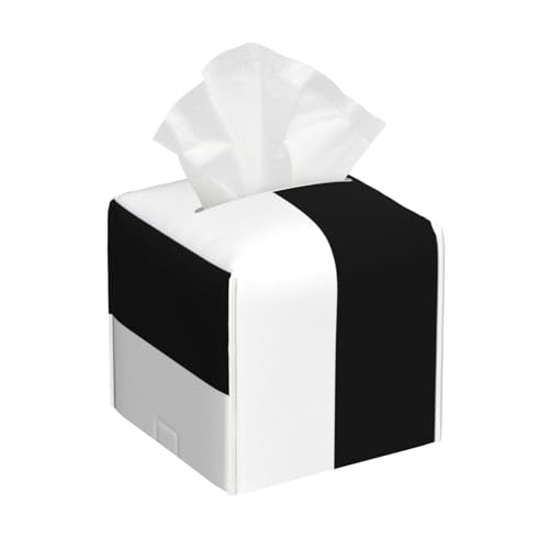 Housse boîte mouchoirs cuir rayures noir-blanc