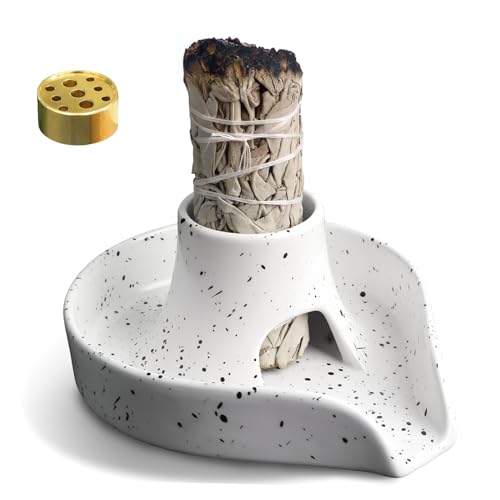 Porte-encens sauge blanc 3 en 1 bol céramique