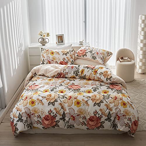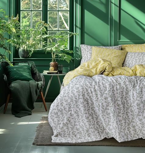 Gezu Housse Couette 220x240cm Fleurs Jaune Vert Blanc
