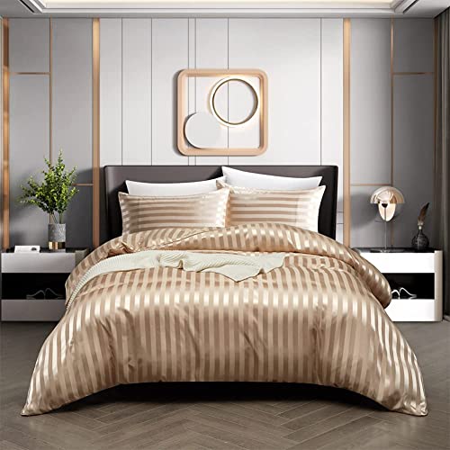Topsate housse couette satin rayures kaki soyeux parure lit...