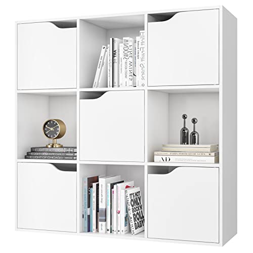 FirFurd Bibliothèque Blanc 9P emplacement 5 portes Rangement...