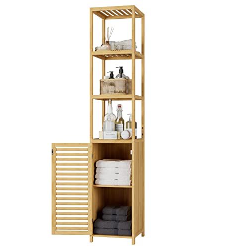 Armoire Haute Rangement Bambou Salle de Bain 3 Étagères Prés...