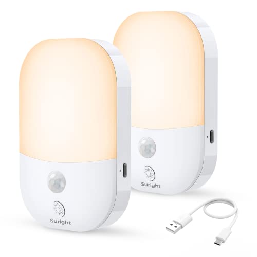 Suright Veilleuse Type-C rechargeable 2 Pack, Détecteur Mouv...