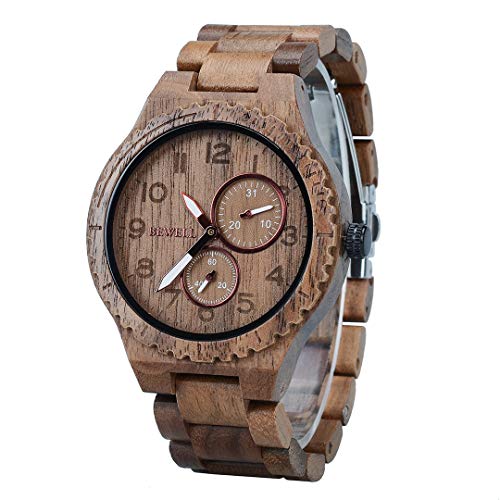 Belle montre analogique bois homme quartz date calendrier ro...