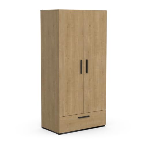 Armoire Penderie Tirage & Niche Style Industriel Chêne Noir...