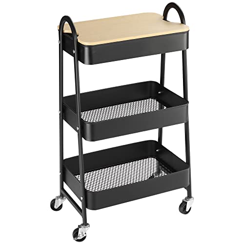 Chariot rangement acier MDF 3 niveaux avec poignées